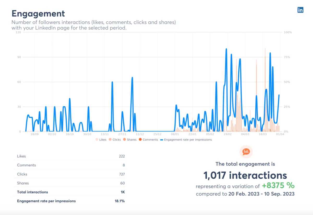 The content generated 1,017 interactions, including 727 clicks, 222 likes and 60 shares.